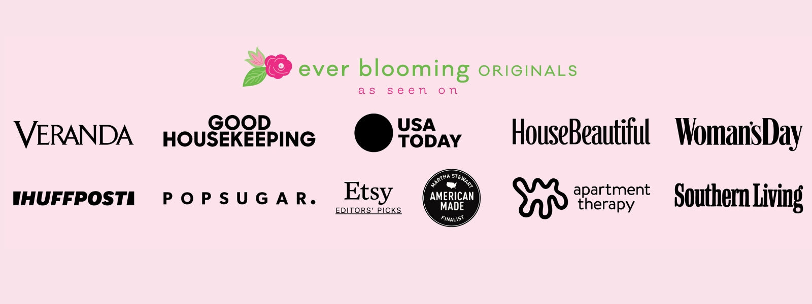 Ever Blooming Originals has been featured in Good Housekeeping, Southern Living, House Beautiful, Women’s Day, Apartment Therapy, HuffPost, and more. With over 55,000 sales and 14 years in business, we’ve built a reputation for quality and craftsmanship. Every piece is handmade in our studio near Annapolis, Maryland, ensuring unique designs created with care.